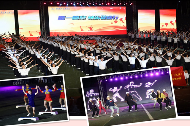 “快乐健康行“中,青春活力的广播操和热情似火的啦啦操瞬间点燃全场气氛;韵律操《律动青春》彰显了青春和活力;留学生们在动感音乐伴奏下,用一首中文《相约地大》唱出了对地大的爱。