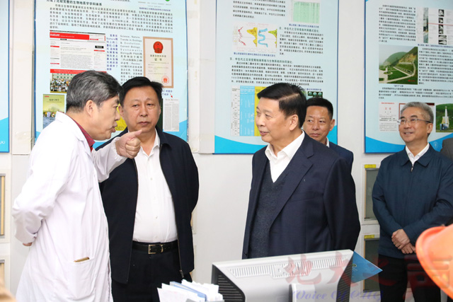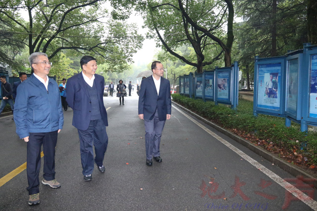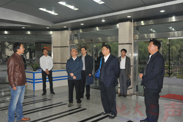 (地大之声记者徐燕 摄影宋勇 范庆贺 谢谨谦)10月21日,全国政协常委、人口环境资源委员会副主任、原国土资源部部长姜大明,原国土资源部副部长汪民,国家自然资源督察武汉局局长崔岩,省国土资源厅厅长张猛,中国地质调查局有关部门负责人、武汉地调中心负责人等来校考察调研.党委书记何光彩、校长王焰新、副校长刘杰,相关部门、学院、科研平台负责人参加调研。