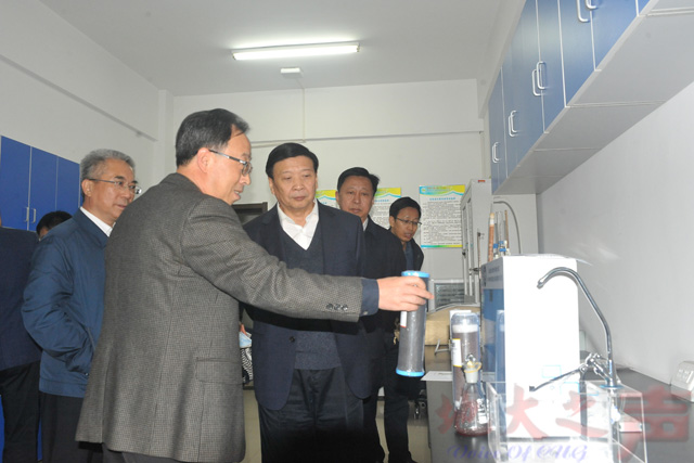 在国家地质环境修复技术创新平台培育基地,姜大明一行参观了相关实验室和自主研发的仪器、产品,基地主任、环境学院院长马腾教授汇报了平台在高砷地下水原位修复、固体废弃物处置与资源化、矿山生态环境修复与监控等多个领域关键修复技术和应用情况。姜大明在听取汇报后,对固废资源化利用等提出希望和要求。