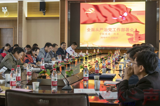 (地大之声记者刘妍慧 摄影战蓉蓉)11月2日,学校在惠宾楼四层会议室召开全面从严治党工作部署会,深入学习贯彻党的十九大和十九届中纪委二次全会、教育部直属系统警示教育大会精神,推动全面从严治党向纵深发展。校党委书记何光彩,党委副书记、纪委书记成金华,校纪委委员,各二级党组织纪委书记(纪检委员),相关单位主要负责人参加会议。成金华主持会议。