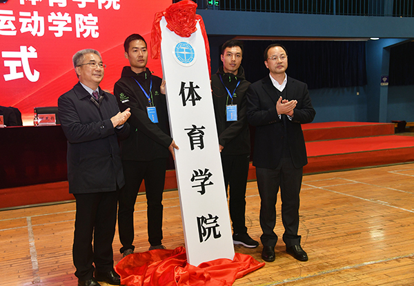 何光彩、王焰新共同为体育学院揭牌
