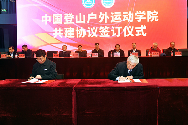 张志坚、傅安洲共同签署《中国登山户外运动学院共建协议》《登山运动史料整理、利用合作协议》