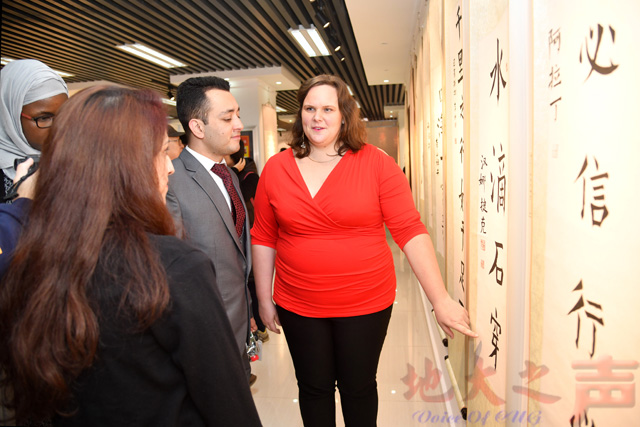 随后,与会人员前往丝绸之路学院国际展厅观展,并参加了现场演绎篆刻艺术和集说唱书法于一体的“三字经”及“飞花令”等系列活动。