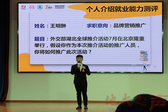 来自各高校的12名大学生,从1万余名初赛选手中脱颖而出,进入总决赛。比赛分个人介绍和就业能力测评、争锋相对、即兴演讲三个环节,考察每位参赛者的就业求职综合能力。“湖北省有150万在校大学生,请策划一档与“我选湖北”计划相关的电视节目,让更多大学生爱上湖北留在湖北。”“大学生找工作选择对口行业还是热门行业?”“今年是改革开放40周年,谈谈大学生如何更好的完成历史使命?”一个个犀利的问题都成为选手们台上的考题,主办方结合参赛者的求职意向、时事新闻、热点话题,考核参赛者语言表达、逻辑思维、协调沟通及应变能力。