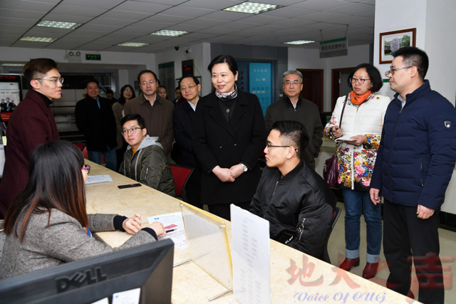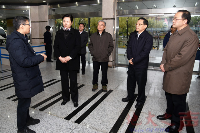 (地大之声记者徐燕 摄影张玉贤)12月6日,湖北省委常委、宣传部部长、高校工委书记王艳玲来校调研学习贯彻全国教育大会精神情况,先后走访环境学院、学工处、地质过程与矿产资源国家重点实验室等单位,在教学综合楼召开座谈会。她强调,要深入学习领会和准确把握习近平总书记关于教育的重要论述,牢牢把握“九个坚持”的根本遵循,结合实际抓好会议精神的贯彻落实。省委高校工委副书记孔祥恩,2018全国最美教师、中国科学院院士殷鸿福,米兰党委书记何光彩,校长王焰新,副校长傅安洲、王华、刘杰,党委常委、组织部部长储祖旺,校长助理蒋少涌、周爱国,以及各有关单位负责人、师生代表等参加调研。