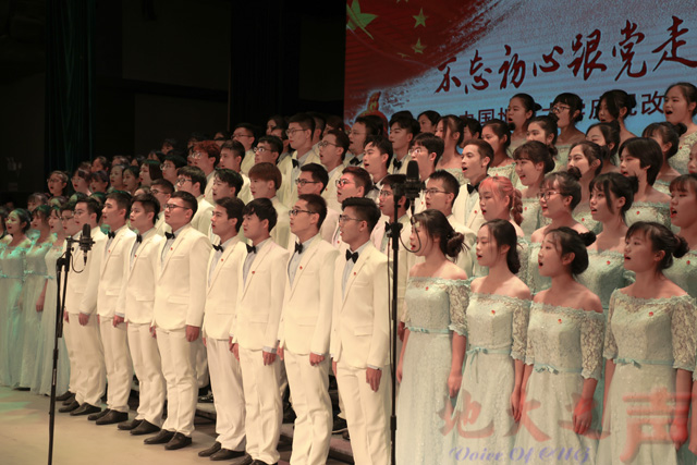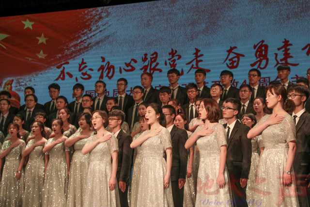 (地大之声学生记者卢子蒙 赵子瑄 摄影赵奕康)12月6日,“不忘初心跟党走 奋勇建功新时代”庆祝改革开放40周年主题歌咏活动在弘毅堂举行,校党委书记何光彩、副校长傅安洲,各相关部门、学院负责人及千余名师生到场观看。