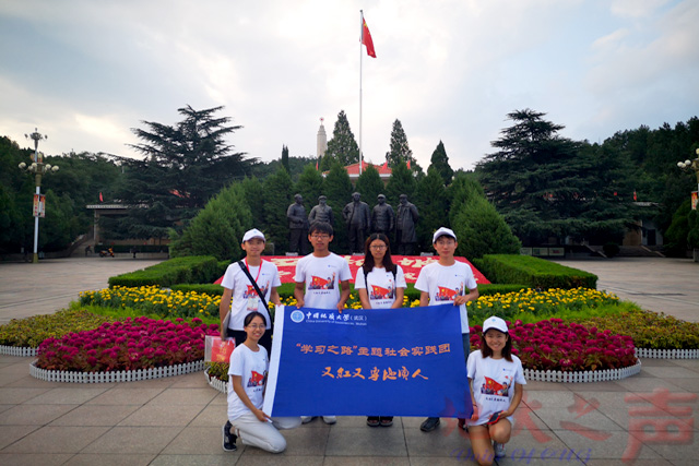 地球科学学院“又红又专地质人”实践团队由赵得爱、王珩老师指导,学院多名学生党员组成,他们在2018年暑期奔赴北京、石家庄等四地,紧扣学校“学习之路”系列教育,从当代大学生对习近平新时代中国特色社会主义思想的学、思、悟、践四个方面入手,从青年行、学、讲、做四个维度展开实践调研。