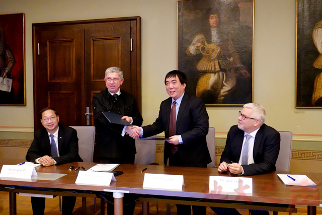 赖旭龙与克劳斯·迪特尔(左二)签署两校本-硕培养协议