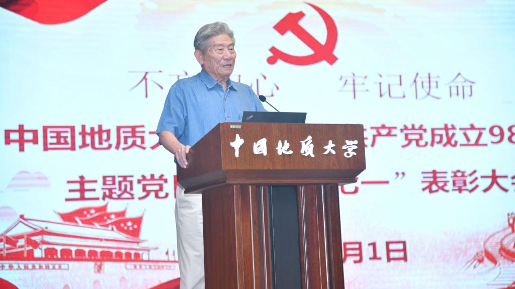 “光荣在党50年特别纪念奖”代表、中科院院士赵鹏大教授结合自身经历,分享了自己的人生体会。他说:“1952年毕业前夕我加入了中国共产党,正确地选择了我的政治方向,奠定了我为人民事业、为祖国事业奋斗终生的思想。”发言中,他分享了自己十六字的人生信条,即“选好方向、逆境而上、完美为本、勤奋为纲”,勉励大家“做平凡人,做出彩事”,用自己的实际行动报效伟大的祖国和人民。