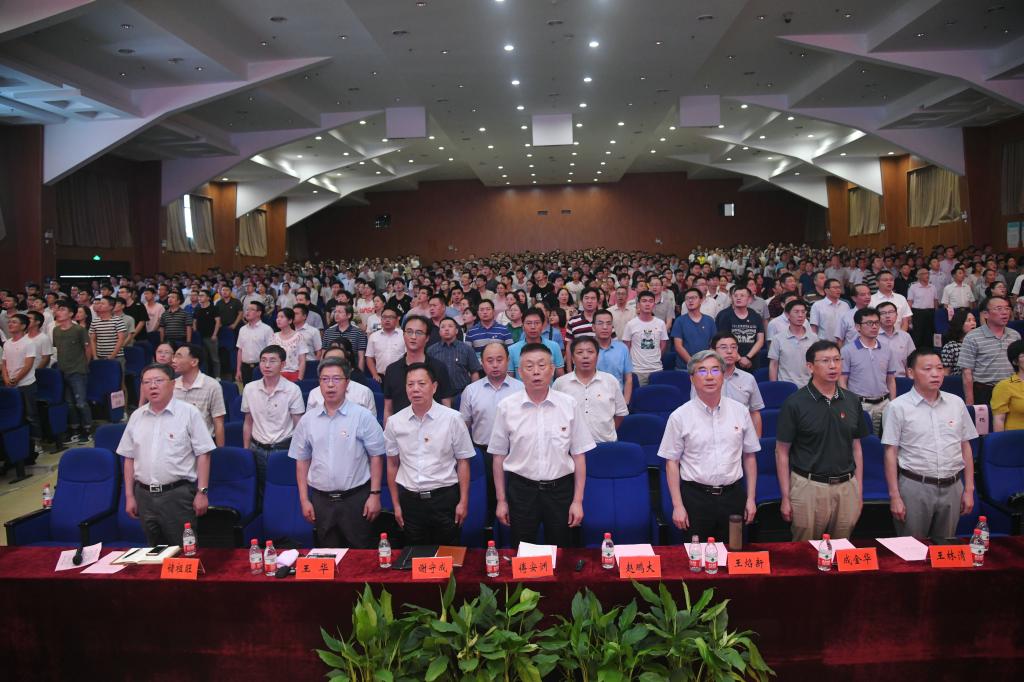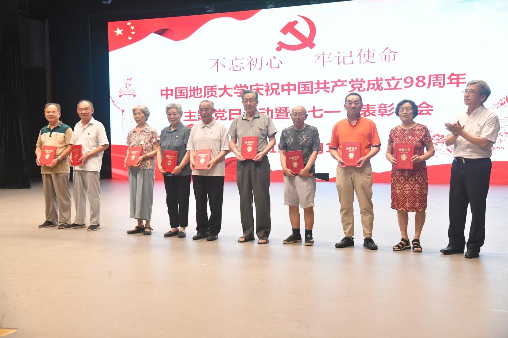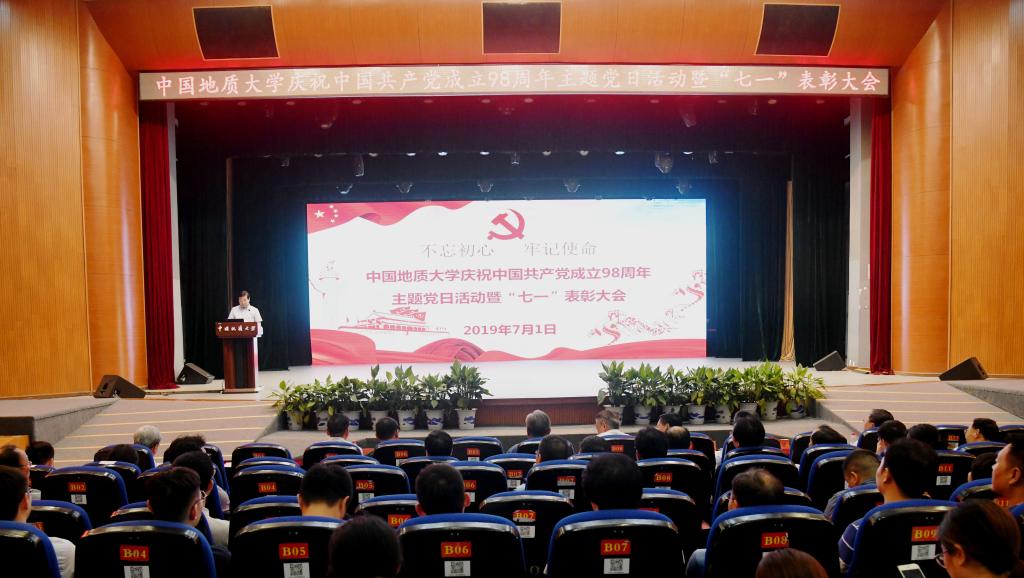 地大新闻网讯(记者刘妍慧 徐燕 摄影张玉贤)在中国共产党成立98周年、学校全面学习贯彻习近平新时代中国特色社会主义思想和党的十九大精神、贯彻落实学校第十二次党代会要求之际,7月1日,庆祝建党98周年主题党日活动暨七一表彰大会在弘毅堂举行。中科院院士赵鹏大,教育部直属高校党建工作联络员谢守成教授,在校党委常委,处级党员干部,全体党支部书记,受表彰单位和个人以及新发展党员代表参加。党委副书记唐辉明主持会议。