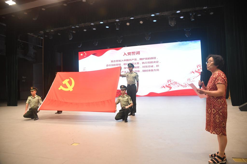 新发展党员入党宣誓暨全体党员重温入党誓词,“光荣在党50年”老党员代表张明兰领誓。