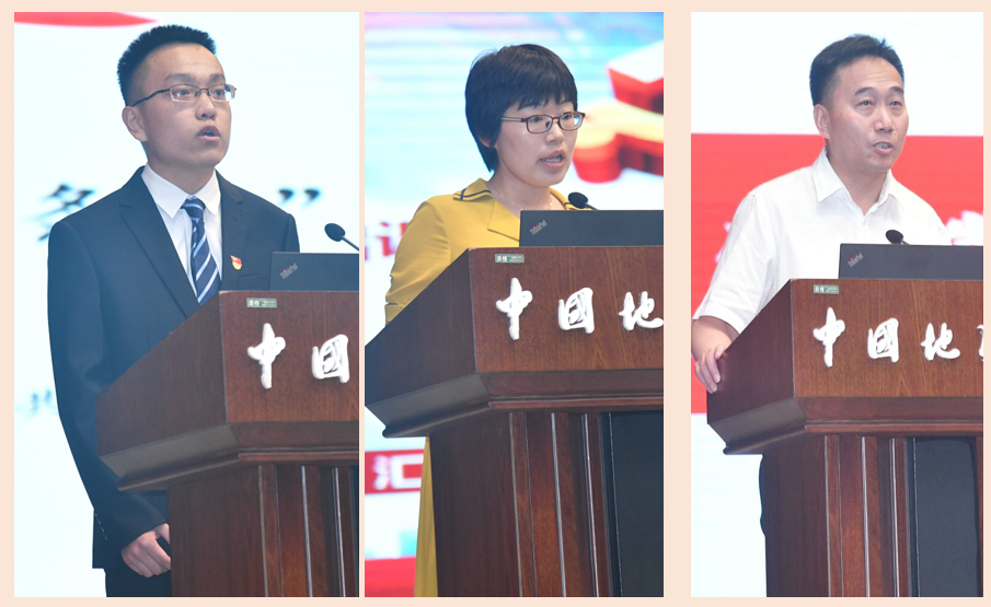 优秀学生党支部代表、公共管理学院2016级本科生党支部许蓝志,优秀教工党支部代表、材料与化学学院化学系第一党支部书记吴艳,优秀分党委代表、环境学院党委书记李素矿分别发言。