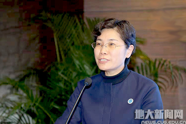 黄晓玫讲话。她说,山东校友分会的成立,是全党深入学习贯彻党的十九届四中全会精神,学校扎实推进“不忘初心、牢记使命”主题教育、加快建设地球科学领域世界一流大学背景下的一件喜事,是地大人水乳交融血脉亲情的重要见证。她希望,通过各地校友分会打造校友与母校的“情感联络站”和“发展共同体”,再续母校与校友发展新篇章。