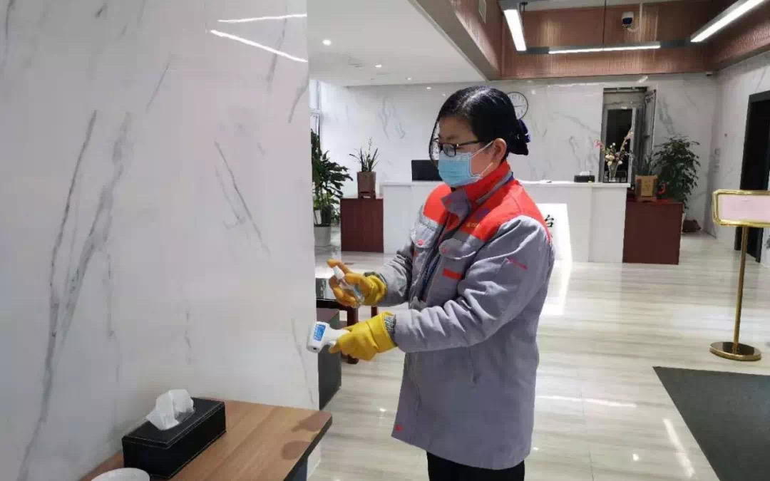 地大物业人正在办公区域消毒