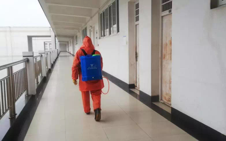 疫情面前,消杀工作显得刻不容缓,物业“消杀小分队”尽显担当。校园里,“校园卫士”在来回穿梭着,他们身穿白色连体防护服,戴起口罩、护目镜,背起几十斤的喷壶奔走在校园的各个角落,严防死守,彻底消毒,不遗漏一处。