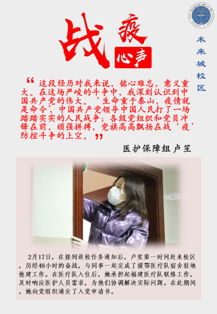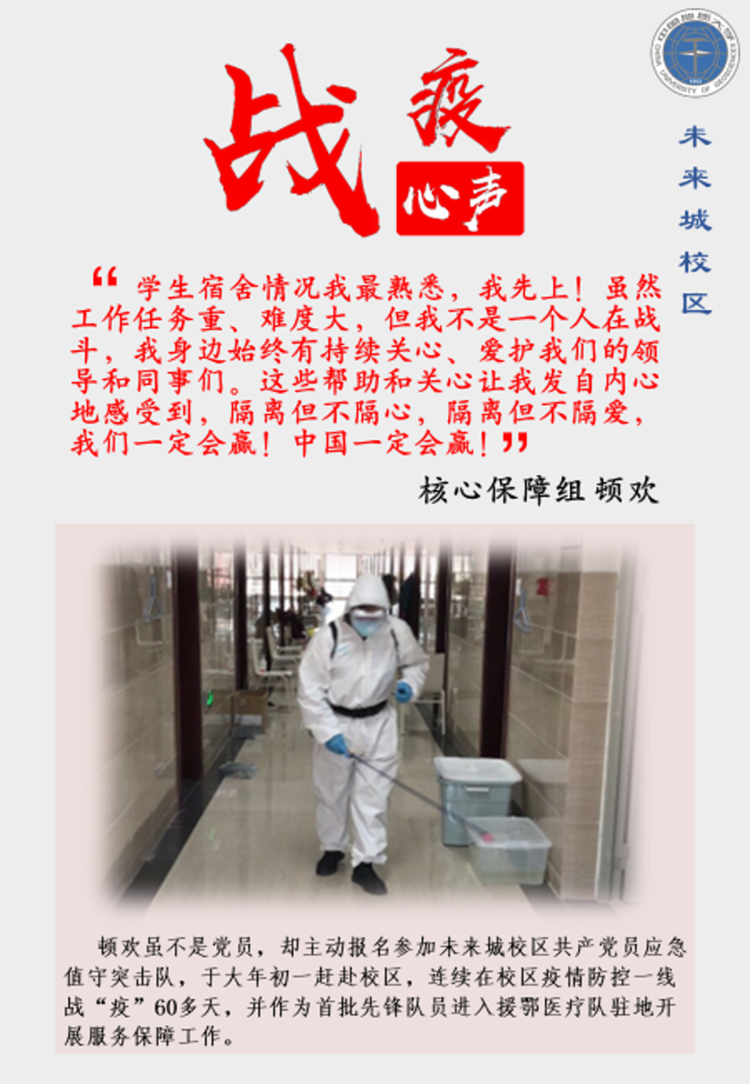 天暖了,花开了。城市,也即将苏醒了。我们经历过担忧、恐慌、迷茫,我们也终将重新起航,翘首展望,当疫情进入最后的攻坚阶段,让我们听听这些,战“疫”在未来城校区一线同志们的真实心声,聆听他们讲述疫中所感,一起展望战“疫”胜利后的美好绽放。