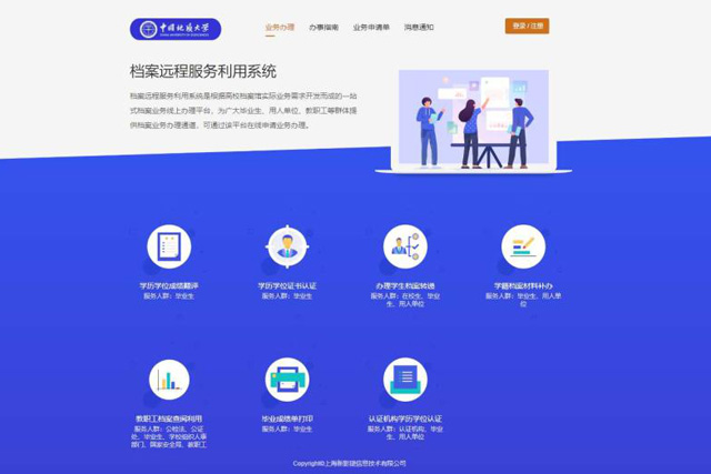 系统还支持教职工、在校生、毕业生、用人单位、公检法单位、公证处、认证机构、用人单位、组织人事部门等多角色登录使用,支持现场办理、在线办理和寄送办理多维度服务,尽最大努力满足新形势下的档案业务需求。
