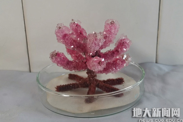 为了弥补观众因疫情影响错过了樱花观赏季的遗憾,“精益求晶”团队根据晶体成核生长原理,通过制备过饱和溶液并控制晶体的生成、形状、大小和均匀度,从而产生水晶樱花树,其精致的成品效果让观众连连称赞。