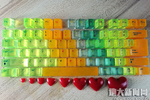 “‘胶’出你的键盘我的心”团队带来DIY装饰工艺品的创意,他们利用环氧树脂基双组份胶黏高分子材料滴胶,按一定的比例混合,并根据喜好添加色精和颜料,经过一定时间的固化,一款精美多彩的滴胶饰品就生成了。