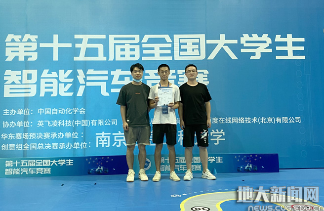 “地大御风队”由自动化学院李诚宇、唐凯风、肖子恺、赵宏基、江旭等5名同学组成,指导老师为赵娟、安剑奇,获双车组一等奖;“地大乘风队”由自动化学院苏杰、周逸铭、杨豫龙、黄原同学和机械与电子信息学院王全龙同学组成,指导老师为赵娟、张传科,获电磁AI组一等奖;“CUGROBOT团队”由地理与信息工程学院莫惠南、江严钊、舒鹏杰、郑剑宇、李子宇等5名同学组成,指导老师为罗忠文教授、刘袁缘副教授,获创意ROS组一等奖;“地大追风队”由自动化学院范烜赫、王辰轩同学和机械与电子信息学院陶智威同学组成,指导老师为赵娟、安剑奇,获信标组二等奖。