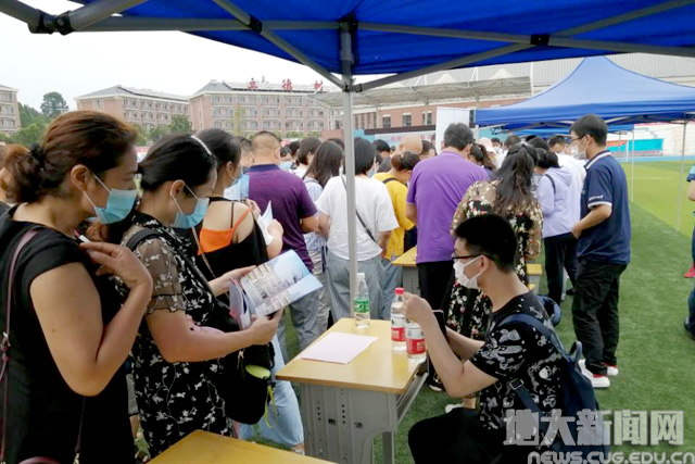 下午的招生宣传活动开始之后,他就来到地大摊位,帮助地大的老师们宣传。“那些学弟学妹们的家长看到我是母校毕业上了地大,就纷纷过来问我一些关于大学的问题,而我也尽自己所能解答了他们的疑惑。”陈子浩说,很多学生家长对地大表现出了浓厚的兴趣。陈子浩很自豪去年参加高考取得了好成绩,进入了地大这个梦寐以求的校园。最后天色渐暗,咨询的人渐渐散去,陈子浩与他的朋友跟地大的老师道别,依依不舍地离开了高中母校。