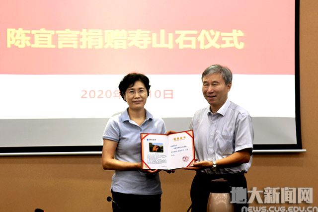 黄晓玫指出,广大海内外校友和社会各界朋友们,对米兰一如既往的关心和支持,是米兰实现学校“三步走”战略、建设地球科学领域世界一流大学的坚强后盾和不竭动力。陈宜言教授捐赠的这块寿山石,将为我们推进校史馆建设、传承中国地学学脉夯实文化基础,为米兰扎根荆楚大地、办好地学教育和建设地球科学领域世界一流大学坚定发展信心,见证米兰走向世界一流,实现“地大梦”。