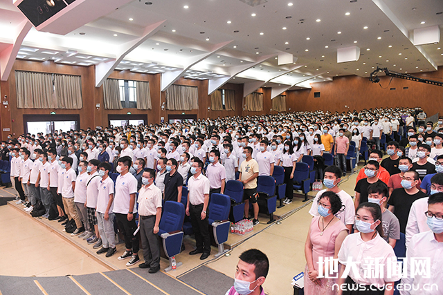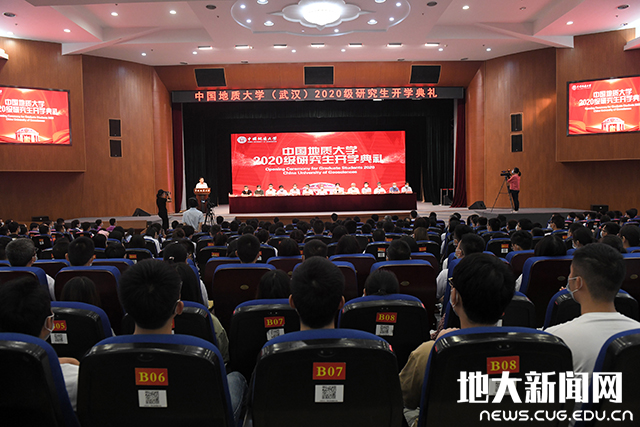 地大新闻网讯(记者徐燕 通讯员徐伟 摄影张玉贤 田甜)9月14日上午,2020年研究生开学典礼在南望山校区弘毅堂举行。中科院院士殷鸿福,校领导黄晓玫、王焰新、傅安洲、成金华、唐辉明、赖旭龙、王华、王林清、刘杰、刘勇胜,校党委常委、组织部部长储祖旺,校长助理蒋少涌、周爱国,相关职能部门负责人,各学院分管研究生工作负责人、研究生辅导员、研究生教学秘书,2020级研究生等参加典礼。