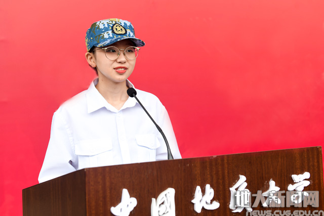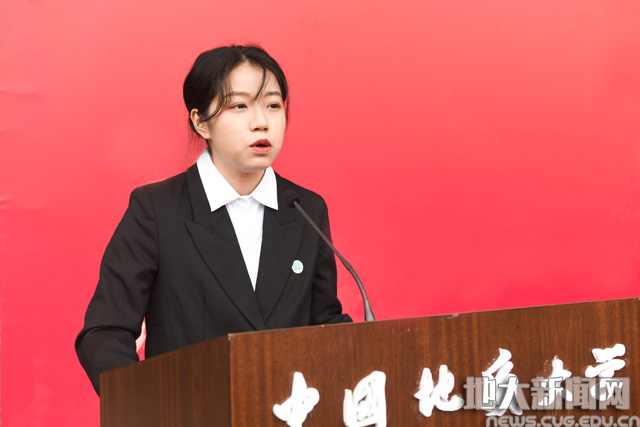 在校生代表、校学生会主席孔昕瑜表示,过往3年的地大生活,给予了她天地广阔的格局胸襟和同频共振的家国情怀,她期待学弟学妹们在地大乘风破浪,与国同歌。