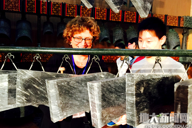 外国友人在编钟国乐团体验编钟艺术
