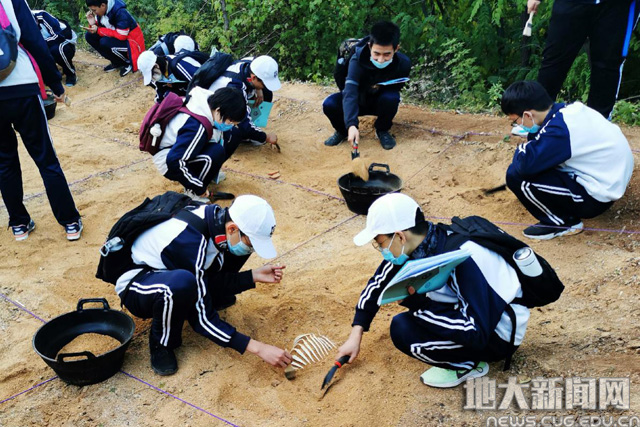 地大新闻网讯(通讯员王德珲)10月23日至25日,地球科学学院在周口店实习基地举办首次地质研学营活动。岩石学国家级教学团队的郑建平教授、周口店野外实践教学团队,与88位北京四中顺义分校的高一学生和地理老师,开展周口店“北京人”遗址参观、模拟考古发掘、聆听地学讲座、参观实习基地、野外地质调查体验等一系列丰富多彩的活动,让师生们感受了周口店独特的地质文化魅力。