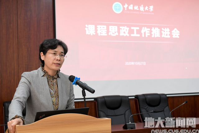 黄晓玫就进一步推进落实学校《课程思政建设实施方案》,提出三点意见:一是着力把对课程思政建设的认识提升到新高度,充分认清全面加强思政课程与课程思政建设,是巩固马克思主义在高校意识形态领域指导地位、坚持社会主义办学方向的必然要求,是加强和改进新时代学校思想政治工作、增强思想政治教育时代感召力的必然要求;二是着力把课程思政建设水平提升到新高度,提升以理服人的扎实教学本领,坚持显性教育和隐性教育相统一,打造凸显地球科学领域世界一流大学特质的课程思政教育教学模式,坚持把教师作为课程思政建设的实践者和推动者;三是着力把课程思政建设的协同机制提升到新高度,构建党委统一领导、党政齐抓共管、教务部门牵头抓总、相关部门协同联动、院系落实推进的工作格局,进一步明确职责分工,压实主体责任,形成工作合力。