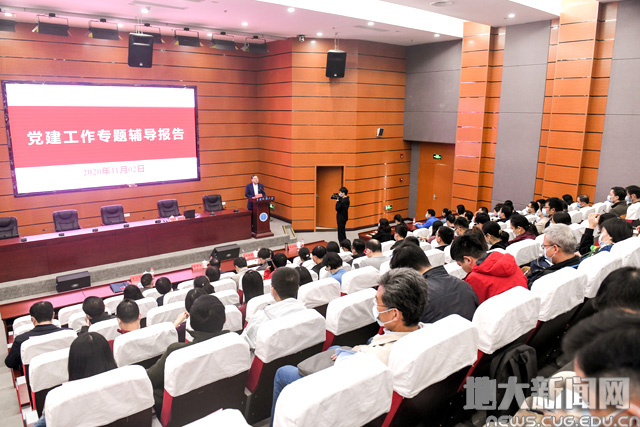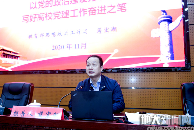 地大新闻网讯(记者毛国樨 摄影张玉贤)11月2日,米兰在南望山校区教学综合楼开展党建专题辅导报告,邀请教育部思想政治工作司党建统战处处长蒋宏潮作报告。校党委副书记成金华、王林清,校党委常委、组织部部长储祖旺,机关党务部门中层干部,二级党组织书记、副书记、组织秘书,学生党建辅导员,全校教工支部书记参与学习。储祖旺主持报告会。