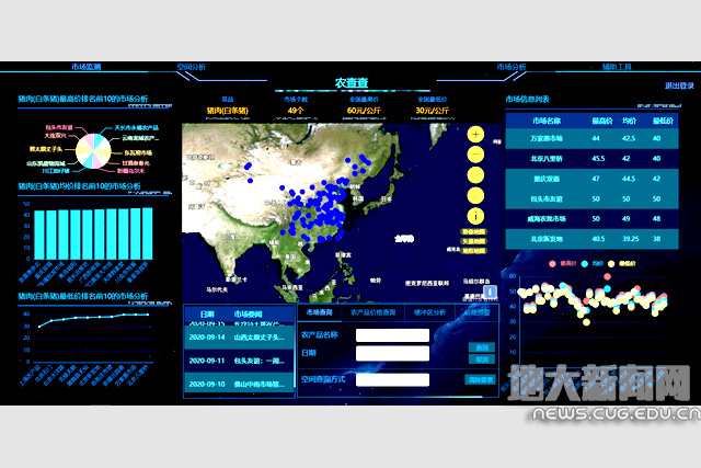 大赛4月份启动报名,10月提交作品。6个月的时间里,团队开发出了优秀的GIS系统并提交了一份优秀的作品《农查查》。《农查查》系统以大屏数据可视化展示平台,快速地展示海量全国农产品价格数据,支持全国4300个农产品批发市场、500余种农产品价格数据实时同步更新,让数据看起来更直观。该网站以纵生式开发模式,最终完成了一个完整的全国农产品价格大数据分析平台。该系统界面通过专业的设计人员进行了优美的设计,PPT和演示视频也是匠心独运,该团队通过不懈的努力和默契的配合斩获佳绩。