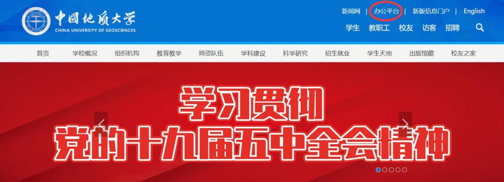 新版办公平台集成在学校信息门户内,使用数字校园统一身份认证系统登录。办公平台入口设在学校官网首页,或登录网址http://oa.cug.edu.cn/seeyon/caslogin.jsp。