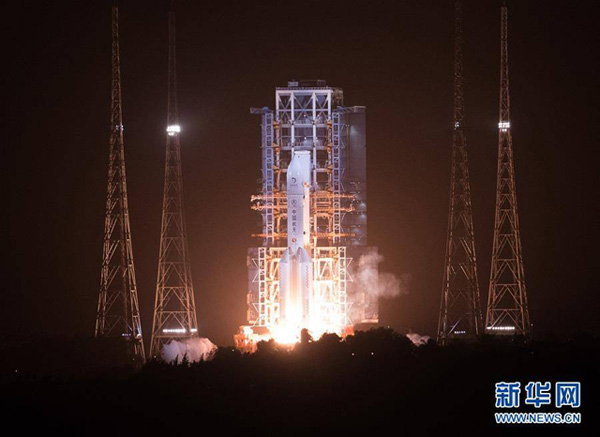这是长征五号遥五运载火箭发射。 新华社记者 金立旺摄