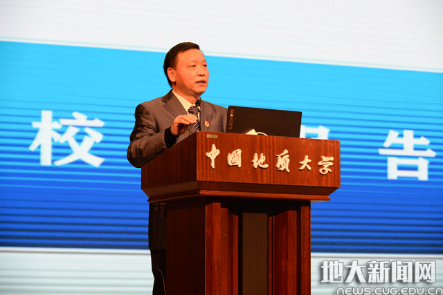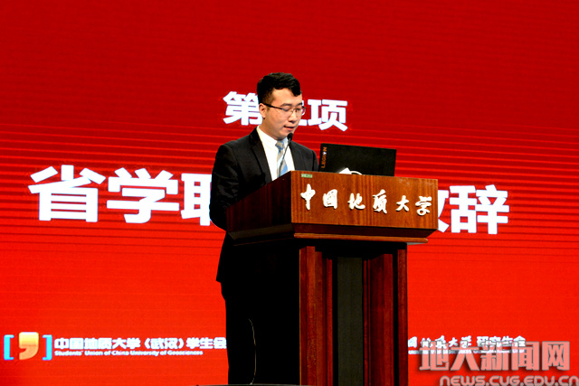 任鹏飞代表湖北省学生联合会对大会的胜利召开表示祝贺。他希望,地大学生会、研究生会以此次大会的召开为契机,积极践行“艰苦朴素、求真务实”校训精神,组织动员广大同学坚定跟党走,奋进新时代,为夺取全面建设社会主义现代化国家新胜利贡献青春、智慧和力量。