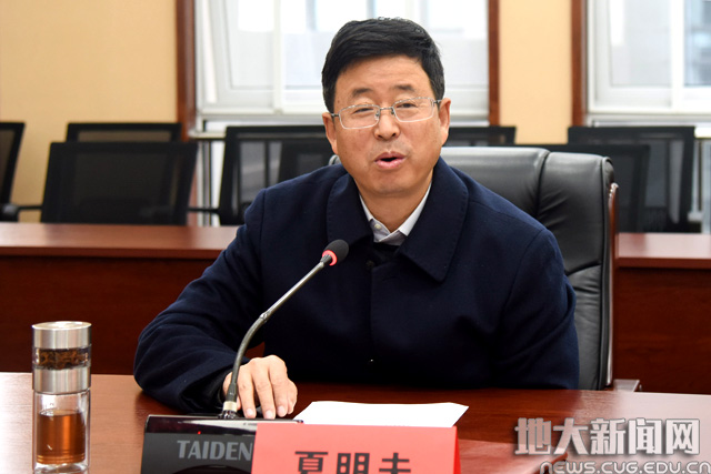 夏明夫从地理位置、自然资源和经济发展三个方面介绍了新县基本发展情况。他表示,新县拥有厚重的红色资源、丰厚的绿色生态资源和社会资源。地大在地质学、矿产资源能源、地质工程等研究领域特色鲜明,独具优势,拥有大批重要成果。他希望地大充分发挥人才智力、知识创新、技术创新等优势,在县域资源调查、生态文明展示、矿产资源科研规划、户外体育活动设计、人才培养等领域,与新县开展多层次、多渠道、多形式的交流与合作,为革命老区新县实现高质量发展带来活力。