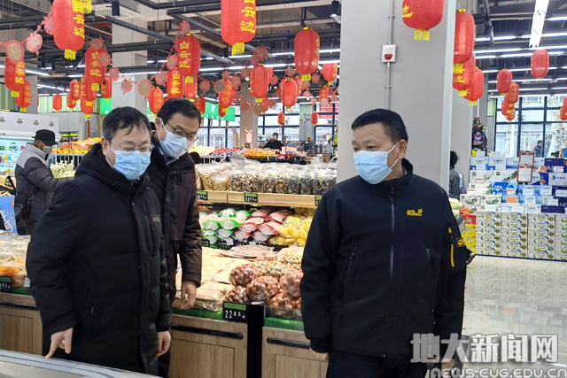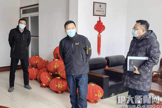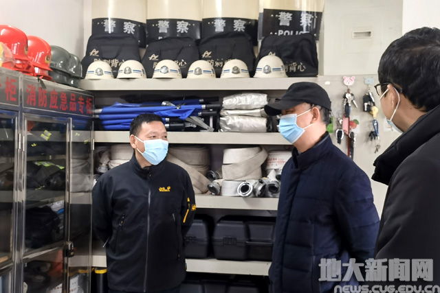 地大新闻网讯(记者江玲)2月8日,学校开展2021年春节安全检查。校党委副书记王林清带队前往喻家山庄物业中心、东区超市、水电服务中心、校园110指挥中心及西区食堂等检查安全工作,并慰问寒假期间坚守工作岗位的一线教职工,向他们送去春节的问候和祝福。学校办公室、后勤保障处、保卫处、学工处等相关负责人参加检查工作。
