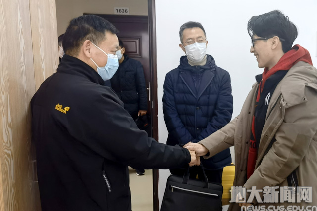检查组一行前往新峰公寓和留学生公寓慰问春节期间留校学生