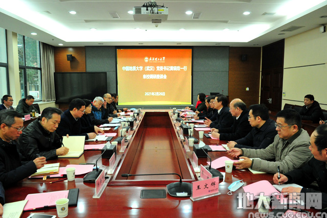 地大新闻网讯(通讯员黄少成)2月26日下午,校党委书记黄晓玫,副校长傅安洲、刘杰、刘勇胜,校长助理周爱国及相关职能部门负责人,赴武汉理工大学调研,双方就全面深化综合改革工作进行了广泛交流。武汉理工大学党委书记信思金,副校长陈文、王发洲,以及相关职能部门负责人参加调研座谈。