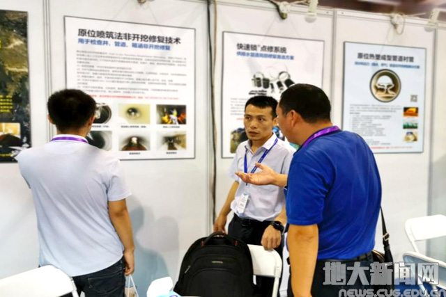 孔耀祖(中间)在管道工程与非开挖技术国际研讨会上进行推介