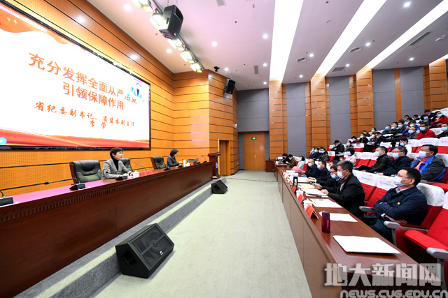 她指出,要深刻领会关于在应对重大风险考验中推进全面从严治党的科学总结,全面增强党的领导力、锻造强大的战斗力、永葆旺盛的生命力、形成广泛的凝聚力。要深刻领会全面从严治党首先要从政治上看的深远考量,充分认识党风廉政建设和反腐败斗争取得的历史成绩,同时,也要清醒认识当前反腐败斗争形势依然严峻复杂。要深刻领会发挥全面从严治党引领和保障作用的战略部署,以强有力的政治监督确保党中央重大决策部署贯彻到位,不断实现“三不”一体推进的战略目标,以钉钉子精神纠“四风”、树新风,持续整治师生身边腐败和作风问题,充分释放监督体系的治理效能。