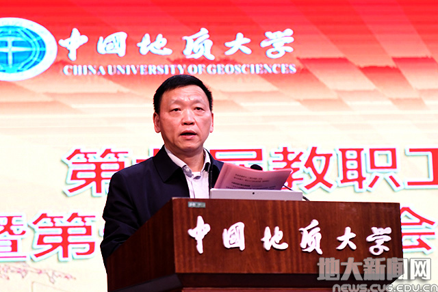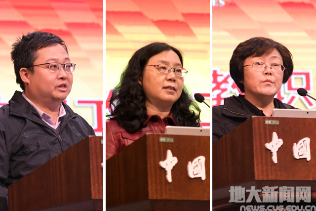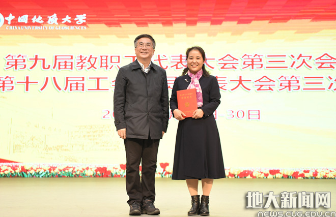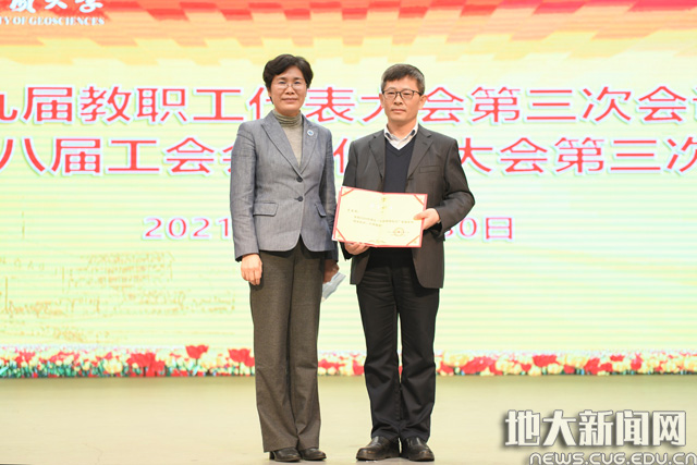 副校长傅安洲宣读表彰决定。大会表彰2020年湖北省“五一劳动奖章”、2020年第十一届湖北“十佳师德标兵”、2021年“湖北省三八红旗手”、2019-2020年度工会工作先进集体和先进个人、九届一次和九届二次教代会提案工作先进集体和优秀提案、学校第二届“最美地大教工”和学校2020年度“十佳巾帼建功立业标兵”。
