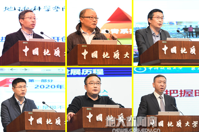围绕大会主题,地球科学学院院长章军锋、地球物理与空间信息学院院长熊熊、自动化学院院长曹卫华、地理与信息工程学院院长王绍强、计算机学院院长王力哲、外国语学院院长张峻峰分别作了题为《奋楫者进,打造地球科学领域世界一流研究型学院》《地球物理与空间信息学院一流学科建设汇报》《深化改革谋发展、凝心聚力启新篇》《落实十四五规划,实现高质量发展》《从指标式增长到精细化治理——计算机学院办学思路》《把握时代脉搏,提升学科品质,助力学校建设》的交流发言。