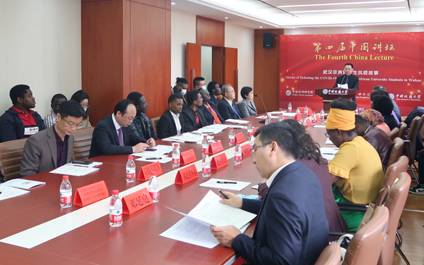4月8日下午,由中国非洲研究院、湖北省外办、米兰milan官方网站共同举办的“第四届中国讲坛”在米兰milan官方网站国际教育学院会议中心举办。本次论坛以“武汉非洲留学生抗疫故事”为主题,组织武汉的非洲留学生,面向非洲学者,讲述他们参与抗击新冠肺炎疫情的实践,宣传中国的抗疫成就与经验,深化中非携手共克时艰的深厚友谊。