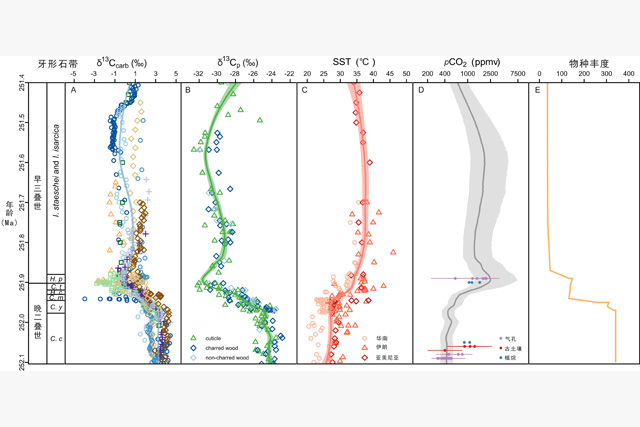 二氧化碳是公认的温室气体,大气二氧化碳浓度与气候变化之间存在紧密联系。重建古大气二氧化碳浓度不仅能够反映地质时期的古环境和古气候情况,还能为未来的气候变化提供一定的参考依据。二叠纪-三叠纪之交发生了显生宙以来最大规模的生物灭绝事件,海洋和陆地生态系统均遭受重创。这次生物大灭绝事件伴随着显生宙最显著的一次升温事件,表层海水温度升高了近10℃。温室气体二氧化碳很可能是二叠纪-三叠纪之交升温事件的主要原因,因此建立高分辨率且连续的古大气二氧化碳浓度变化是揭示该时期全球升温机制的重要途径。近年来开发的二氧化碳浓度新指标—植物有机碳同位素已经成功应用到不同地质时代的二氧化碳浓度重建中。该指标的材料可以通过提取细碎屑岩中微米级的植物化石碎屑获得,故其产出层位十分连续。因此,有望通过植物有机碳同位素恢复二叠纪-三叠纪之交二氧化碳浓度连续的变化趋势。