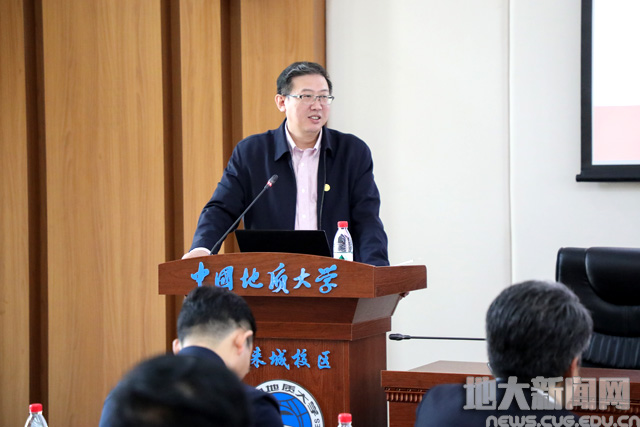 刘勇胜对调研团一行的来访表示欢迎,他介绍了学校情况、办学规模、师资队伍及“三步走”发展战略,并诚挚邀请参会高校后续与地大开展交流,促进多领域合作。
