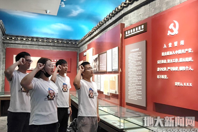 计科先锋宣讲团成员在红安县档案馆学习红色历史,重温入党誓词