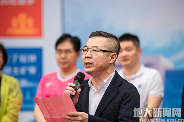 傅安洲致欢迎辞。他代表学校感谢了校友们对母校建设、发展的关注与支持,以及在疫情期间火速驰援武汉、与母校共克时艰的真挚情谊。他希望校友们赛出水平,赛出团结友谊的足球精神,赛出勇于拼搏的地大精神。
