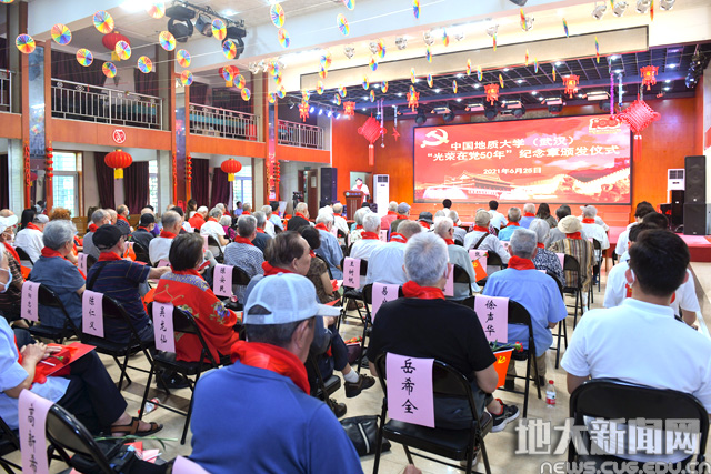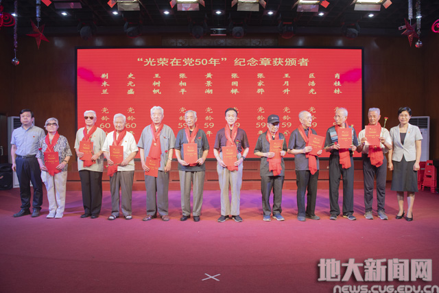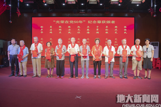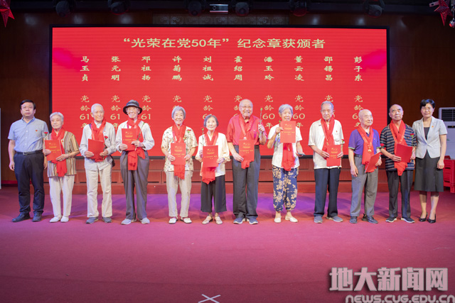 地大新闻网讯(记者田甜 摄影张玉贤 王俊芳)桑榆未晚霞满天,一颗红心永向党。6月25日,“光荣在党50年”纪念章颁发仪式在东区工会活动中心举行。校党委书记黄晓玫,党委副书记唐辉明,学校办公室、党委组织部、党委宣传部、党委学生工作部相关负责人,72名在党50年老党员代表,大学生代表参加仪式。